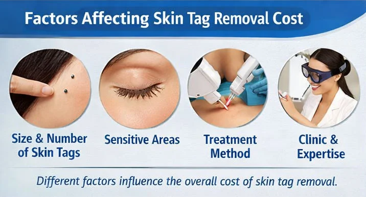 Larger skin tags usually require more time and precision to remove, which can increase the cost. Smaller tags are often quicker and simpler to treat.